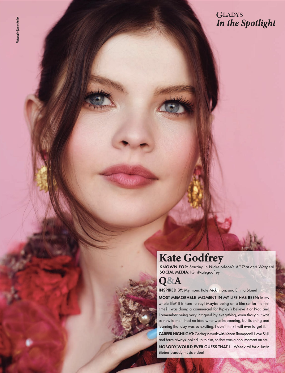In 2019, Kate was cast her first major television role in the highly anticipated season 11 reboot of All That on Nickelodeon, cementing her as a next generation multi-hyphenated talent. Her success in All That awarded her the lead role of Ruby in the Nickelodeon series, Warped. In 2020, Kate made her late-night debut starring in a sketch comedy segment on The Tonight Show Starring Jimmy Fallon.